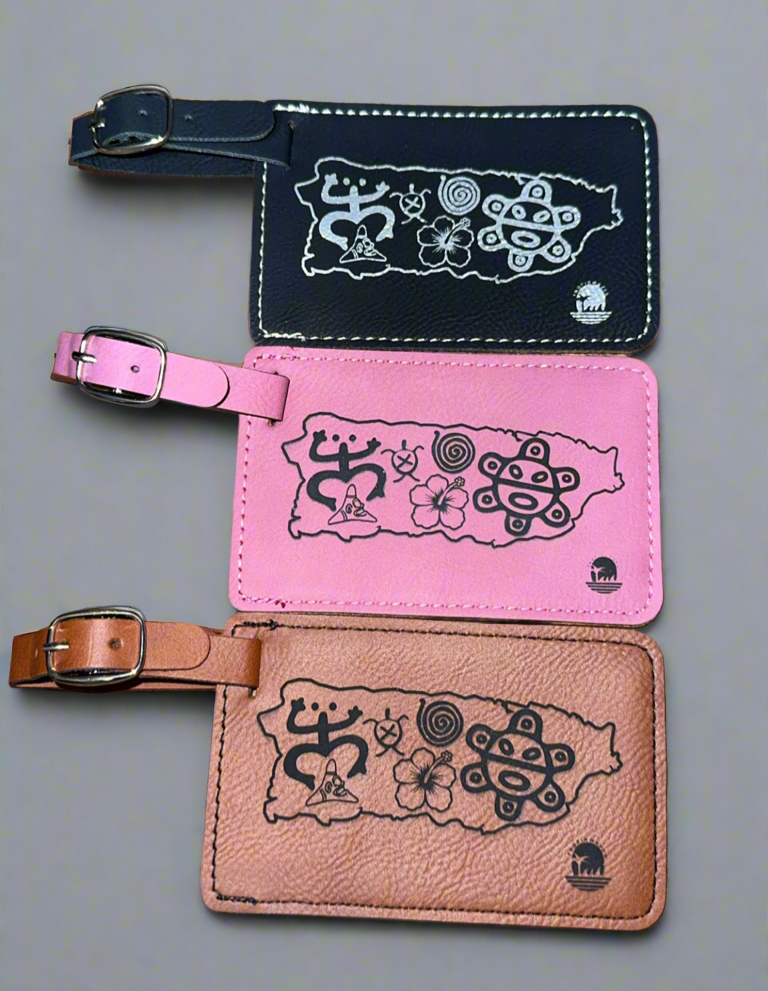 Let your luggage stand out with our custom Isla Taino luggage tag. Easily spot your bag and showcase your unique style while traveling. Say goodbye to boring bags and hello to an island-inspired accessory!